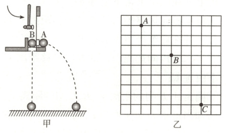 (1) 甲同学采用如图甲所示的装置。为了验证做平抛运动的小球在竖直方向做自由落体运动,用小锤打击弹性金属片,$A$球水平抛出,同时$B$球被松开自由下落。关于该实验,下列说法中正确的有