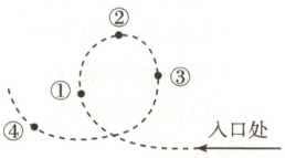 跟踪训练 1:如图所示为某游乐场中过山车运动轨道的简化图,已知过山车从右侧入口处沿箭头方向水平进入轨道,、、、为过山车在轨道上先后经过的四个位置,且为轨道最高点,则在上述四个位置中与入口处速度方向相反的位置是(