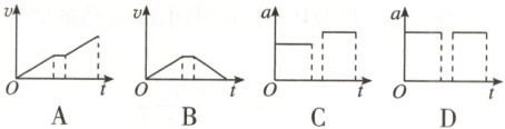 4.(2022·广东选择考) 如图是滑雪道的示意图。可视为质点的运动员从斜坡上的$M$点由静止自由滑下,经过水平$NP$段后飞入空中,在$Q$点落地。不计运动员经过$N$点的机械能损失,不计摩擦力和空气阻力。下列能表示该过程运动员速度大小$v$或加速度大小$a$随时间$t$变化的图像是 (