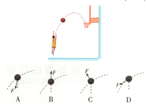 2.(2023·辽宁选择考·T1) 某同学在练习投篮,篮球在空中的运动轨迹如图中虚线所示,篮球所受合力$F$的示意图可能正确的是