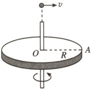 典题3:(多选)半径为$R$的水平圆盘绕过圆心$O$的竖直轴匀速转动,$A$为圆盘边缘上一点,在$O$的正上方有一个可视为质点的小球以初速度$v$水平抛出时,半径$OA$恰好与$v$的方向相同,如图所示,若要使小球与圆盘只碰一次,且落在$A$点,重力加速度为$g$,则圆盘转动的角速度可能为 (