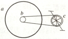 4. 如图是自行车的传动部分,大齿轮通过链条带动小齿轮(固定在后轮轴上)转动,$c$、$b$、$a$分别是大齿轮、小齿轮、后轮边缘上的三点,下列说法正确的是 (