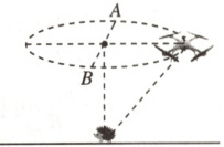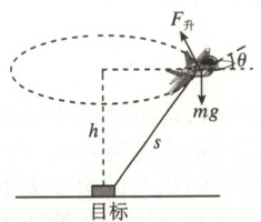 在现代战争中,无人机发挥着重要作用。如图是某固定翼无人机在目标上空高度为 $ h $ 的水平面内盘旋,做匀速圆周运动,测得与目标的距离为 $ s $,无人机质量为 $ m $,巡航速度为 $ v $,所在地重力加速度为 $ g $。以下说法正确的是 (
