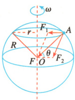 $$。图中 $ F_1 $ 为物体随地球自转做圆周运动的向心力,$ F_2 $ 就是物体的重力 $ mg $,故一般情况下 $ mg < G\frac{Mm}{R^2} $。