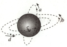 典题 3:如图所示,$a$是静止在地球赤道地面上的一个物体,$b$是与赤道共面的某近地卫星,$c$、$d$均为地球的卫星,其中$d$是地球的同步卫星,以下关于$a$、$b$、$c$、$d$四者的线速度、角速度、周期,以及向心加速度的大小关系正确的是(