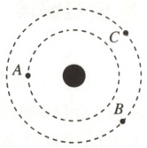 跟踪训练 2:(多选)三颗人造地球卫星$A$、$B$、$C$绕地球做匀速圆周运动,如图所示,已知$m_{A} = m_{B} < m_{C}$,则对于三颗卫星,正确的是(