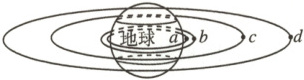 1. (多选)如图所示,$a$为地球赤道上的物体,随地球表面一起转动,$b$为近地轨道卫星,$c$为同步轨道卫星,$d$为高空探测卫星。若$a$、$b$、$c$、$d$绕地球转动的方向相同,且均可视为匀速圆周运动。则(