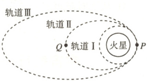 跟踪训练1:BC 飞船在轨道Ⅰ上运动至$P$点时必须点火加速才能进入轨道Ⅱ,因此飞船在轨道Ⅰ上经过$P$点时的速度小于飞船在轨道Ⅱ上经过$P$点时的速度,故A错误;由开普勒第二定律可知,飞船在轨道Ⅱ上运动时,经过$P$点时的速度大于经过$Q$点时的速度,故B正确;由公式$a = \frac{GM}{r^{2}}$可得,飞船在轨道Ⅲ上运动到$P$点时的加速度等于飞船在轨道Ⅱ上运动到$P$点时的加速度,故C正确;由公式$G\frac{Mm}{r^{2}} = \frac{4m r \pi^{2}}{T^{2}}$可得$T = \sqrt{\frac{4 \pi^{2} r^{3}}{GM}}$,因地球质量和火星质量不同,所以飞船绕火星在轨道Ⅰ上运动的周期跟飞船返回地球的过程中绕地球以与轨道Ⅰ同样的轨道半径运动的周期不相同,故D错误。故选BC。