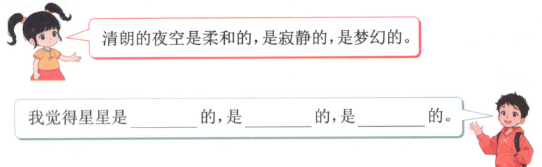 二、小文和小语正在交流对夜空的感受,请你将对话补充完整。