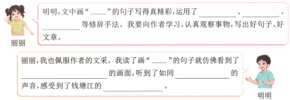 五、小语又分享了其他名家笔下的钱塘江,请仔细阅读并完成练习。(15 分)