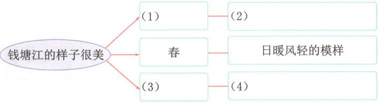 (1)作者从潮、春、雨三个方面描写钱塘江。(1分)