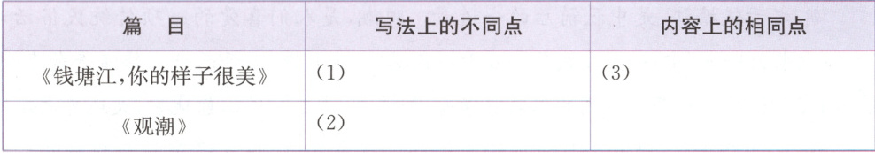 4. 链接教材 对比本文与课文《观潮》,填写下表。(3 分)