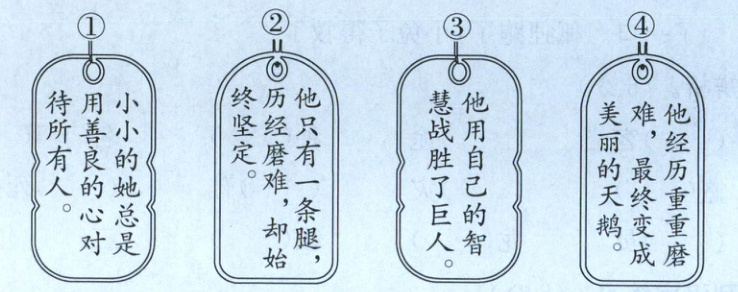 3. 新考法 制作书签 【制作书签】苗苗将自己感兴趣的故事做成了书签,请你帮她将书签内容和故事名称正确匹配。(填序号)(4分)