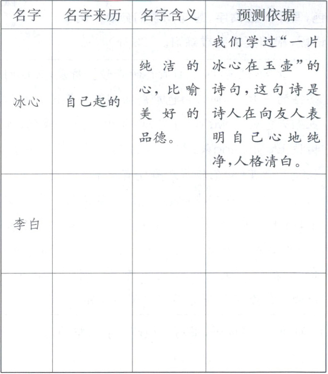 1.示例:自己起的 象征纯洁、高雅。 在中国传统文化中,白色通常象征着一尘不染、纯净、高洁。岳飞 母亲起的 像大鹏鸟一样鹏程万里。“飞”有展翅高飞的意思。 2.示例:我叫李瑶,这个名字是爸爸给我起的,爸爸说“瑶”在古代代表美好的玉石,他希望我能像美玉一样高洁温润、美丽优雅。 3.示例:气自华图书室 该名字的灵感来源于“腹有诗书气自华”,意在提醒大家想要提升个人的气质、内涵,可以多来图书室,多读书,从而丰富自己的精神世界。