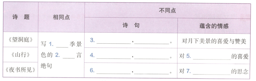 三、【课上赏诗】比较阅读课文中的三首古诗,完成下表。