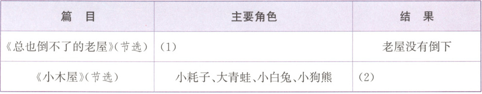 (2)新建的木屋更好,而且更大了(或:动物们一起盖了一间新的小木屋)(1分)