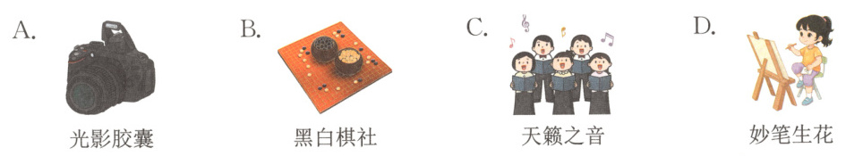 D 解析:“妙笔生花”形容文笔好,善于写作。D项是小女孩在画画,与“妙笔生花”不符。