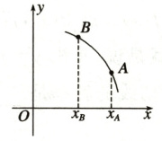 【例2】 已知$y = f(x)$的图象如图所示,则$f^{\prime}(x_A)$与$f^{\prime}(x_B)$的大小关系是 (