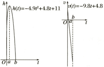 (2)从最高点到入水,离水面的高度h随时间t 的增加而减小,即h(t)单调递减,相应地,v(t)=h'(t)<0.
