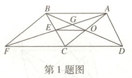 1. 如图,$□ ABFC$的对角线$AF,BC$相交于点$E$,点$O$为$AC$的中点,连接$BO$并延长,交$FC$的