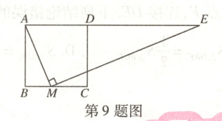 9. 如图,在正方形$ABCD$中,$M$为$BC$上一点,$ME\perp AM$,垂足为$M$,$ME$交$AD$的延长线于点$E$.若$AB = 12$,$BM = 5$,则$DE$的长为