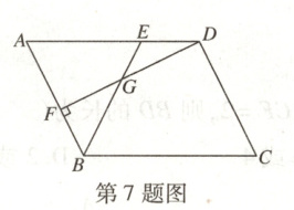 7. (2024 松北一模)如图,在$□ ABCD$中,点$E$在$AD$上,$BC = 3ED$,连接$BE$,$DF\perp AB$于点$F$,交$BE$于点$G$,$\angle ABE = 2\angle ADF$,$BG = GD$,若$CD = 5$,则线段$BF$的长为(