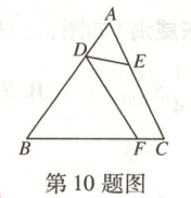 10. 如图,在$\triangle ABC$中,$AB\neq AC$,$D$,$E$分别为边$AB$,$AC$上的点.$AC = 3AD$,$AB = 3AE$,点$F$为边$BC$上一点,添加一个条件: