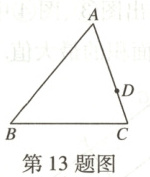 13. 如图,在$\triangle ABC$中,$AB = 24$,$AC = 18$,$D$是$AC$上一点,$AD = 12$,在$AB$上取一点$E$,使$A$,$D$,$E$三点组成的三角形与$\triangle ABC$相似,则$AE$的长为