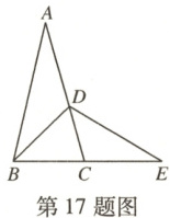 17. (2025 成都)如图,在$\triangle ABC$中,$AB = AC$,点$D$在边$AC$上,$AD = 3$,$CD = 2$,$\angle CBD = 45^{\circ}$,则$\tan\angle ACB$的值为