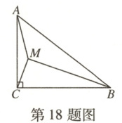 18. 如图,在$\triangle ABC$中,$\angle ACB = 90^{\circ}$,$AC = 7$,$BC = 9$,点$M$是$\triangle ABC$内部一点,连接$AM$,$BM$,$CM$,若$CM = 3$,则$AM + \frac{1}{3}BM$的最小值为