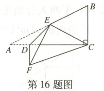 16. 如图,在$\triangle ABC$中,$\angle ACB = 90^{\circ}$,$CB = 5$,$CA = 10$,点$D$,$E$分别在边$AC$,$AB$上,$AE = \sqrt{5}AD$,连接$DE$,将$\triangle ADE$沿$DE$翻折,得到$\triangle FDE$,连接$CE$,$CF$.若$\triangle CEF$的面积是$\triangle BEC$面积的2倍,则$AD =$