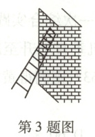 3. 如图,长为$4m$的梯子搭在墙上与地面成$45^{\circ}$角,作业时调整为$60^{\circ}$角,则梯子的顶端沿墙面升高了(