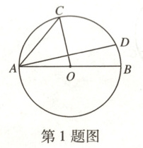 1. 如图,$AB$为$\odot O$的直径,$C$,$D$为$\odot O$上的两点,且$C$为$\overset{\frown}{AD}$的中点,若$\angle BAD = 20^{\circ}$,则$\angle ACO$的度数为(