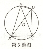 3. (2025四川泸州)如图,四边形$ABCD$内接于$\odot O$,$BD$为$\odot O$的直径.若$AB = AC$,$\angle ACB = 70^{\circ}$,则$\angle CBD$的度数为(