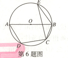 6. 如图,四边形$ABCD$是$\odot O$的内接四边形,$AB$是$\odot O$的直径,若$\angle BEC = 20^{\circ}$,则$\angle ADC$的度数为(