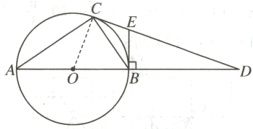 (1)知$\angle OCD=90^{\circ}$,$\therefore \sin D=\frac{OC}{OD}=\frac{1}{3}$.