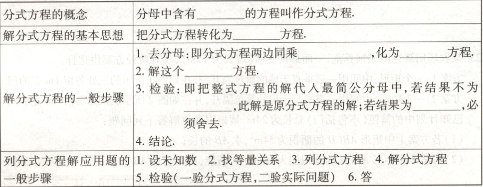 @@3. 检验:即把整式方程的解代入最简公分母中,若结果不为0,此解是原分式方程的解;若结果为0,必须舍去.