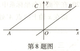 8. 如图,在平面直角坐标系中,菱形 $AOBC$ 的顶点 $A$ 在 $x$ 轴负半轴上,顶点 $B$ 在直线 $y = \frac{3}{4}x$ 上,若点 $B$ 的横坐标是 8,则点 $C$ 的坐标为()