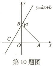 10. 如图,点 $A$ 的坐标为 $(5,0)$,直线 $y = kx + b(b > 0)$ 与 $x$ 轴交于点 $C$,与 $y$ 轴交于点 $B$,$\angle BCA = 60°$,连接 $AB$,$\angle \alpha = 105°$,则直线 $y = kx + b$ 的表达式为()