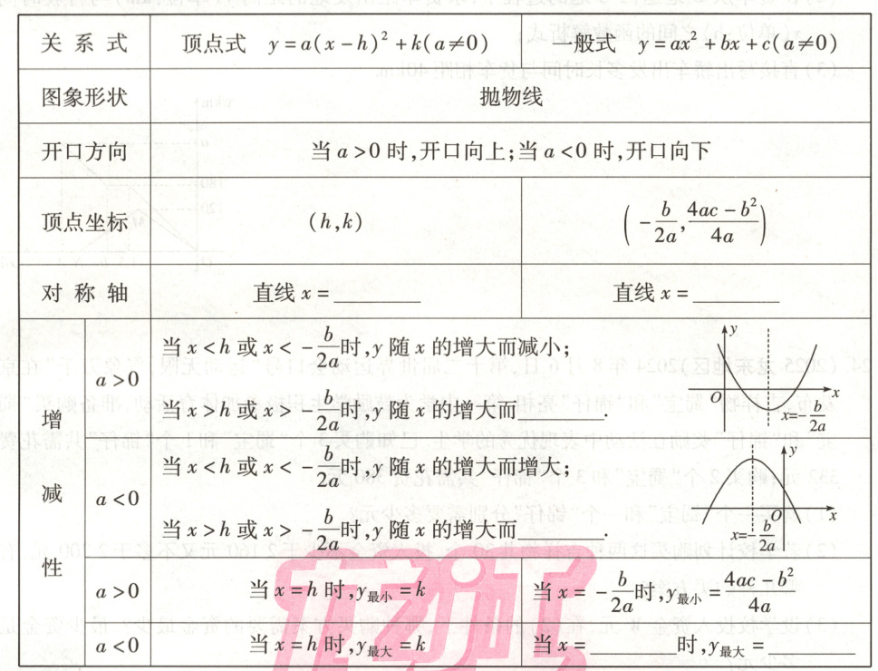 $h$;$-\frac{b}{2a}$;增大;减小;$-\frac{b}{2a}$;$\frac{4ac - b^2}{4a}$