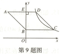 9. 如图,在平面直角坐标系中,菱形$ABCD$的边$AD \perp y$轴,垂足为$E$,顶点