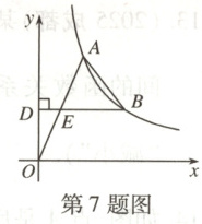 7. 如图,双曲线$y = \frac{12}{x}(x > 0)$经过$A,B$两点,连接$OA,AB$,过点$B$作$BD \perp$