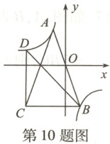 10. (2023龙东地区)如图,$\triangle ABC$是等腰三角形,$AB$过原点$O$,底边$BC // x$