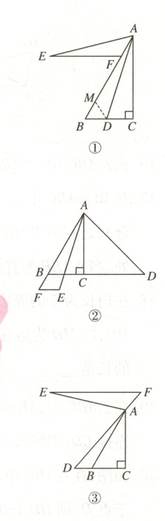 分析问题:某同学在思考这道题时,想利用$AD = AE$构造全等三角形,便尝试着在$AB$上取点$M$,使$AM = EF$,连接$DM$,通过证明两个三角形全等,最终证出结论.