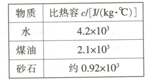 2.D【解析】A.比热容是物质的一种特性,与质量无关,一杯水倒出一半,杯内剩余水的比热容不变,故A错误;B.由$Q_{吸}=cm(t_{0}-t)$可知,物体降低的温度还与质量有关,未知质量不能比较降低的温度,故B错误;C.水的比热容为$4.2×10^{3}J/(kg·℃),$表示质量1kg的水温度升高1℃吸收的热量是$4.2×10^{3}J,$故C错误;D.由$Q_{吸}=cmΔt$可知,水和煤油的质量、吸收热量均相等,由于煤油的比热容较小,故温度升高较多,故D正确。