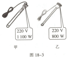 4. 甲、乙两只简易型电加热器(俗称 “热得快”)及其铭牌如图18-3,若它们的电阻不随温度的变化而改变,则下列说法中正确的是(