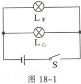 1. 甲、乙两只白炽灯泡按如图18-1方式连接在电路中,闭合开关后甲灯较亮。关于甲灯,下列判断正确的是(