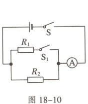 2. 如图18-10,电源电压保持不变,$R_1$ 的阻值为 15 Ω,只闭合开关 S 时电流表示数为 0.4 A,再闭合开关 $S_1$ 时电流表示数为 0.6 A,则电源电压为