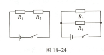 5. 如图18-24所示,电源电压相等,已知$R_1>R_2>R_3>R_4$,开关均闭合后,在相同的时间内,消耗电能最多的电阻是(