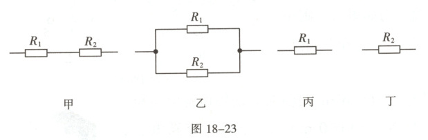 4. 现有两个定值电阻$R_1$和$R_2$($R_1>R_2$),按照如图18-23所示的四种方式,分别接到电压恒为$U$的电源两端工作相同的时间,则四个电路中电流做功大小关系正确的是(